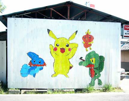 以前は「似て非なるもの」のトトロが描かれていた。気になってはいたが取材にいったときは「似て非なるもの」のポケモンたちになっていた。描き手はかなり上達したと見た。